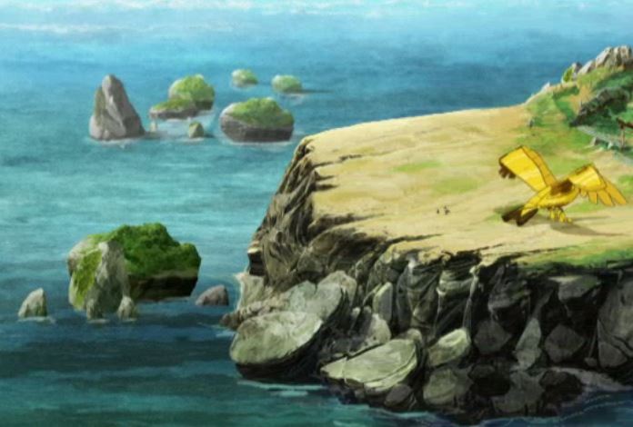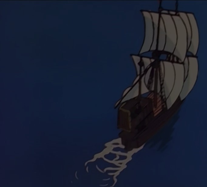 L'un d'entre eux était perché en haut du mat, en train de regarder au loin, attendant que la destination soit en vue, et justement...