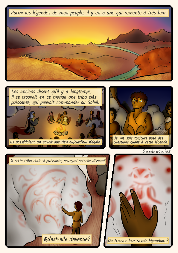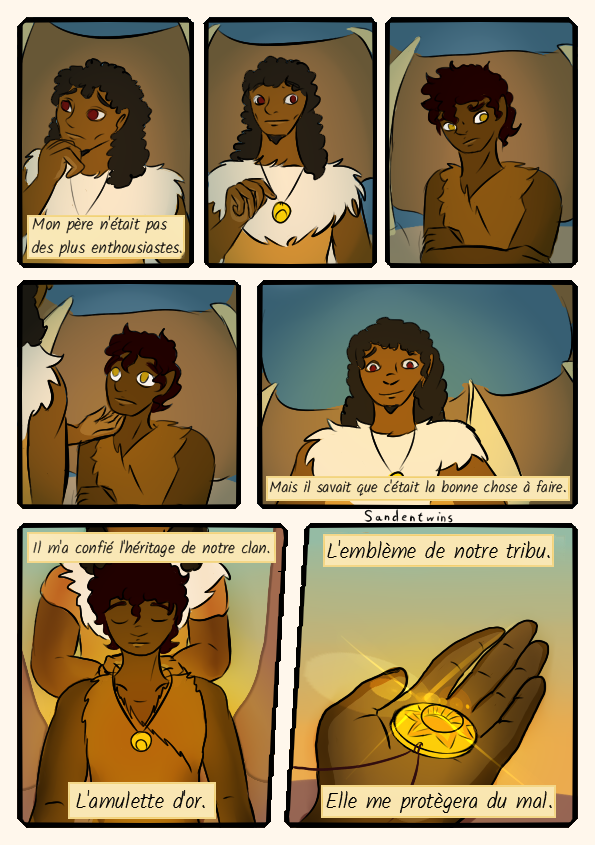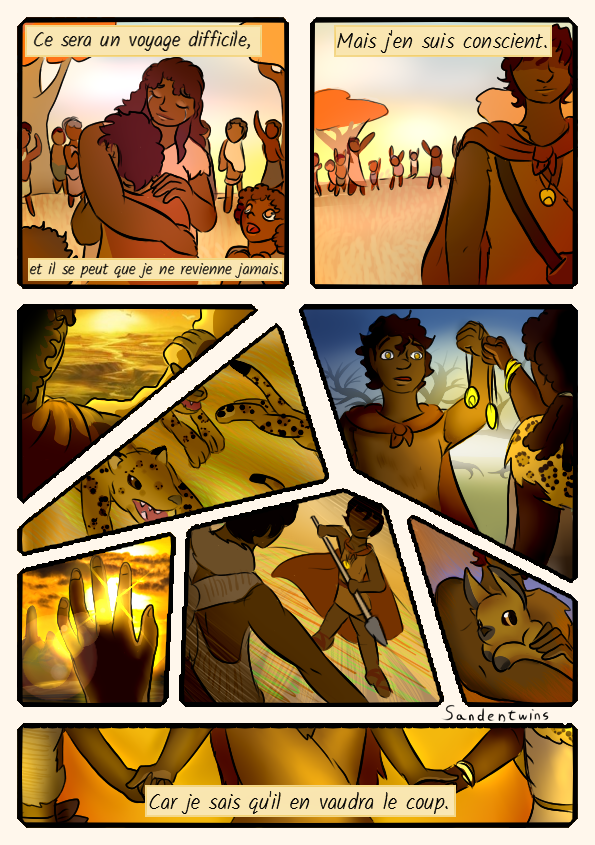 Il sentit une main sur son épaule. Karsha avait senti ses pensées, et voulait l'aider. Doucement, il posa son front contre le sien, et ferma les yeux, laissant ce contact silencieux faire son œuvre. Leurs mots, leurs dialectes s'étaient éloignés au fil des époques, mais tous deux parlaient encore le langage primaire de l'humanité. La compassion, l'empathie étaient leur langue maternelle. Tout les séparait, tout semblait laisser croire qu'ils ne se comprendraient jamais, et pourtant Esteban savait que Karsha avait un jour ressenti la même chose que lui, et lui venait donc en aide aujourd'hui. Comme si peu importe leurs différences, ils restaient pareils au fond d'eux-mêmes: deux jeunes garçons un peu perdus, à l'aube de l'âge adulte, qui redoutaient ce que l'avenir leur réservait mais qui étaient prêts à l'affronter, car tant de gens dépendaient d'eux, désormais.