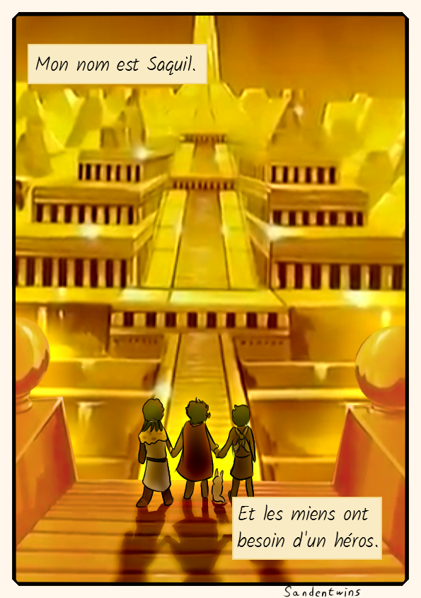 Sandentwins a écrit : 21 juil. 2019, 02:30 -Une Cité mobile. Autant pousser le délire du Grand Condor au maximum, et mettre une Cité sur le dos d'un gigantesque navire volant ou d'un bateau. On peut facilement y caser une fabrique de Solaris. Cette Cité, je la verrais plutôt dans le Nord, où on trouve toutes sortes de légendes d'îles qui sont en fait de gigantesques créatures marines. Si elle vole, elle pourrait se dissimuler en se camouflant. Pourquoi pas y ranger un appareil à contrôler les événements climatiques, à provoquer des tempêtes et tout? Et y apprendre l'origine des pouvoirs d'Esteban. À part or et gris j'ai pas vraiment d'idées de couleurs. Or et bleu nuit, peut-être.