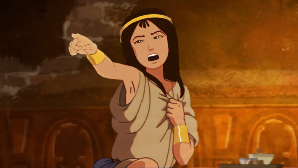Face à elle, l’atlante et la muenne étaient gênés et leurs visages se tintèrent d’un rouge de plus en plus vif. Et devant l’inattention de son public, le naacal frappa dans ses mains, puis s’emporta.