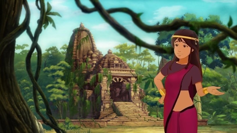 Tao est toujours en train de rire quand ils atteignent l'orée du Temple Mémoire. Ils aperçoivent alors le reste de leurs compagnons, qui les attendent sagement devant le bâtiment. Zia n'est pas là toutefois et Esteban trépigne encore avant, que, finalement, il distingue la forme de Rupang s'approcher. L'éléphant a lui aussi été décoré, arborant des peintures mauves sur le front et une superbe pelisse dorée. L'animal avance d'un pas lent, trop lent au goût d'Esteban, et il porte sur son dos Gunjan, Indali et Zia ! Le pachyderme s'arrête quand il est proche de l'élu puis son cornac et l'hindoue aident la promise à en descendre. L'inca a revêtu un sari rouge par dessus un haut violet, le résultat étant de toute beauté, à tel point que l'élu en perd tous ses moyens !