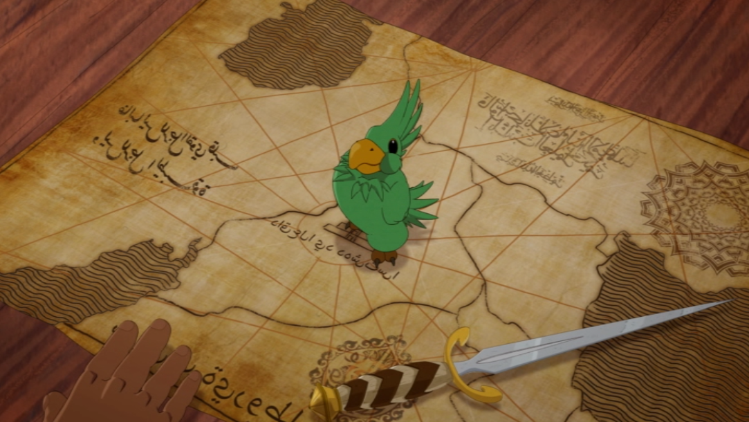 Non par ce que en un sens oui ils sont la « grâce » au Bako, mais pas par ce que c’est lui qui les a amené ici… C’est juste un TITANESQUE COUP DE BOL que comme par hasard au repère de celle qui veux ce masque et a enlevé Zia pour ça, il y ait un truc qui donne la position précise de la cité d’or…