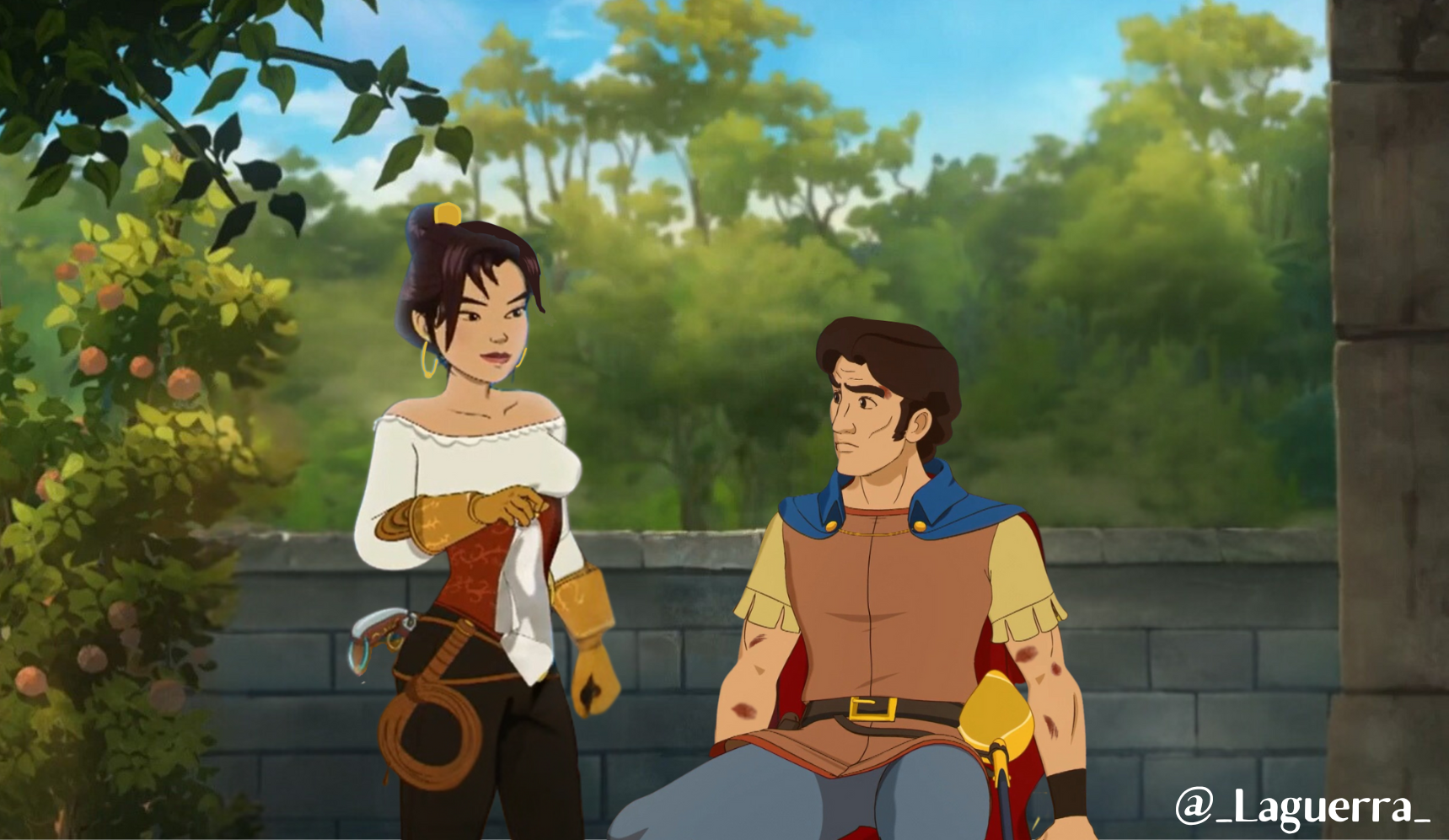 Laguerra : Ne m’appelez pas comme ça ! dit-elle en pointant son épée vers lui.