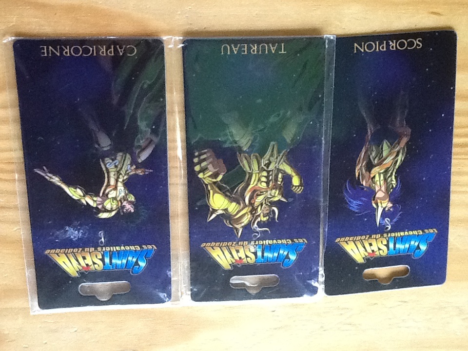 Sur la deuxième photo, ce sont les emballages des portes-clés de Milo du Scorpion, Aldebaran du Taureau et Shura du Capricorne