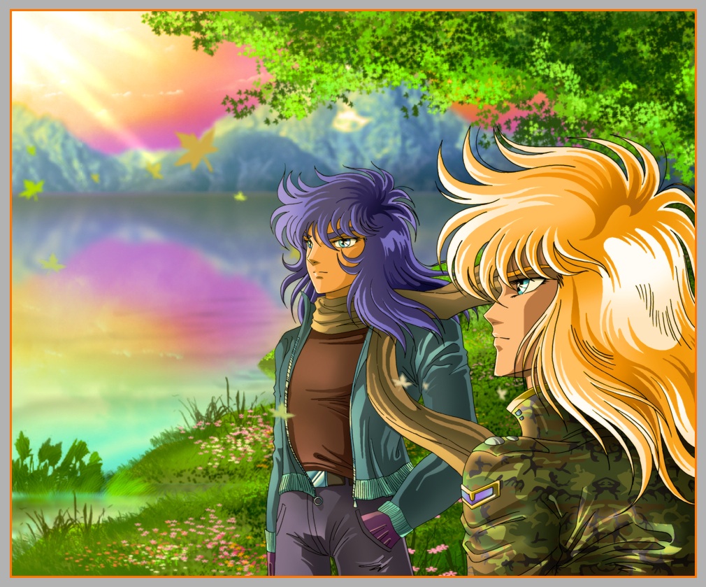 Ah, ce fanart-là, je suis tombée dessus en début de semaine. J'en avais rêvé, un artiste l'a fait: mon cher Milo du Scorpion et mon précieux Hyôga du Cygne, ensemble. Un très beau clin d'œil à l'amitié sincère qui les lie. J'en aie fait mon image de bureau sur mon iPad, ma bannière sur Twitter, ainsi que mon Avatar sur le Forum de saintseiyapedia.com.