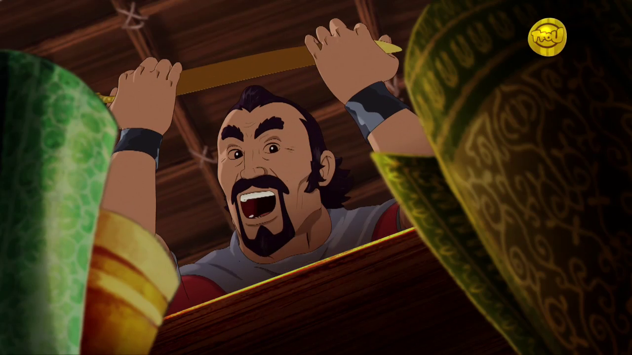 On passera sur tous les gags de la séquence, et on va juste arriver à la finalité, c’est-à-dire qu’Ambrosius et Laguerra se retrouve attaché pendant que Waga dit tout aux autres.