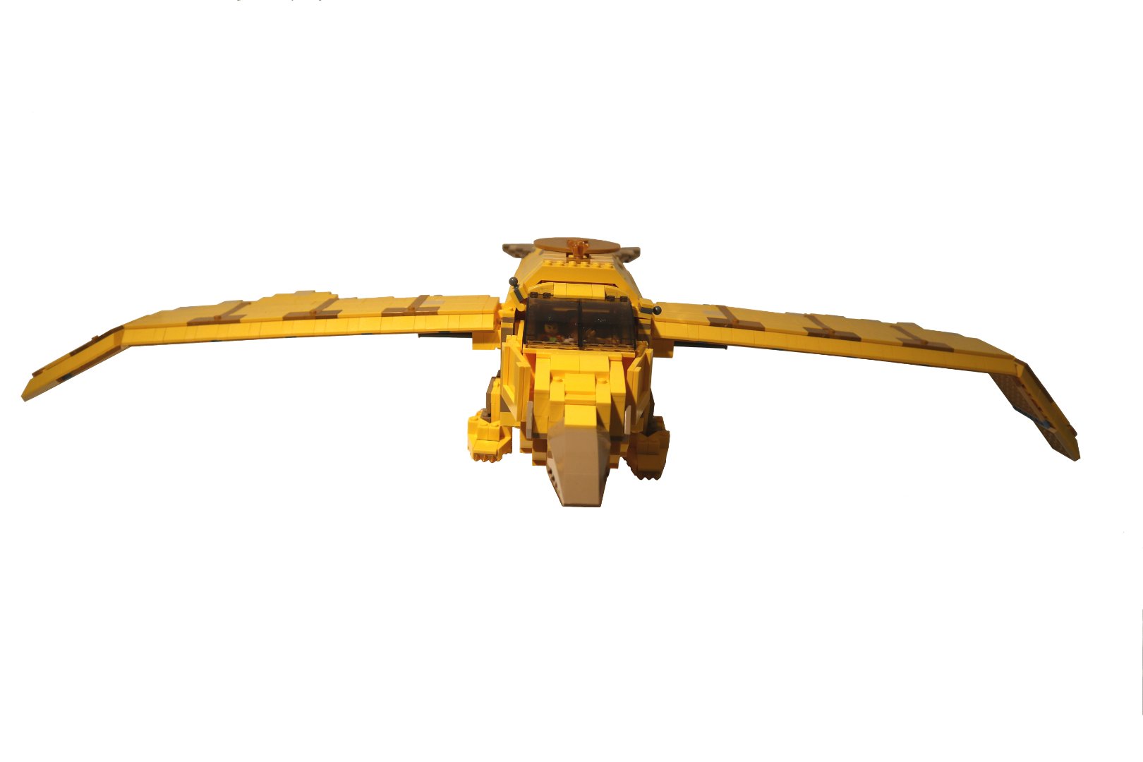 Le grand condor avec le cockpit qui s'abaisse, le bec qui s'ouvre avec des escaliers, les ailes qui se replient, la possibilité de le mettre sur ses pieds ou de replier les pieds.