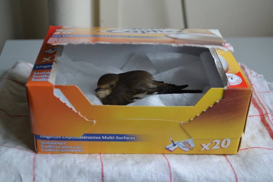 Mais à présent, mon petit visiteur est au chaud et tranquille dans une petite boîte aménagée rien que pour lui et remplie de coton.