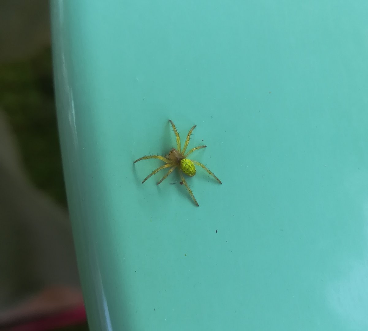 Sinon, hier, j'ai vu une jolie petite araignée jaune/vert fluo.