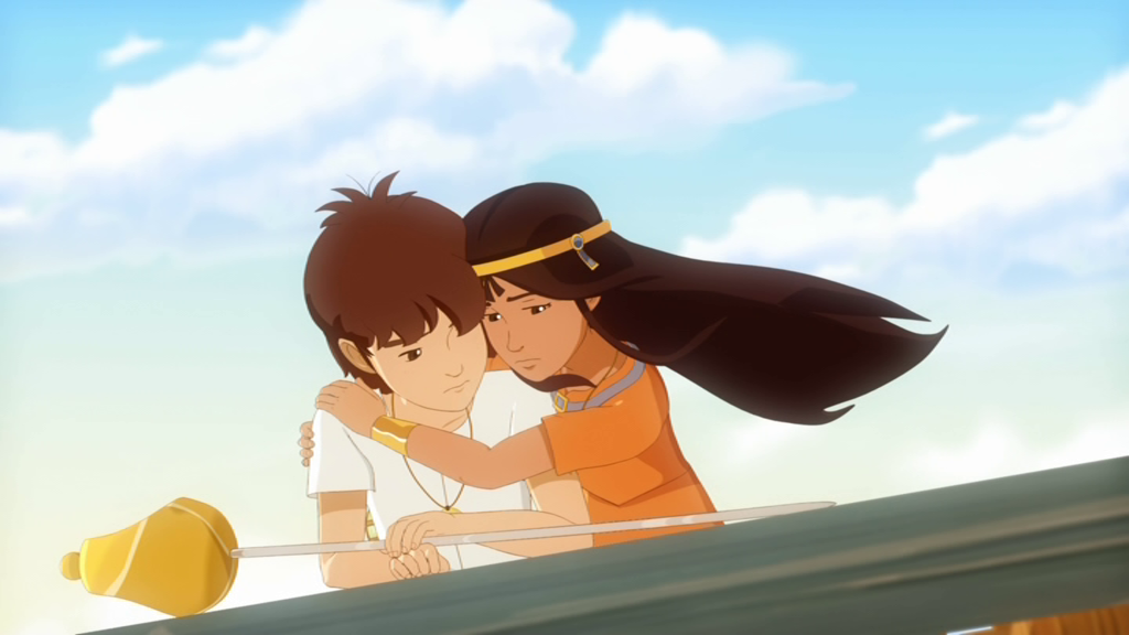 Il y a plein de passages avec les 2 enfants (qui se tiennent la main, se soutiennent). Notamment dans le bateau ou quand ils nagent.