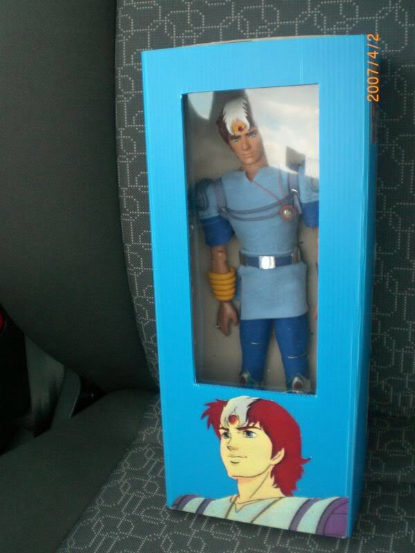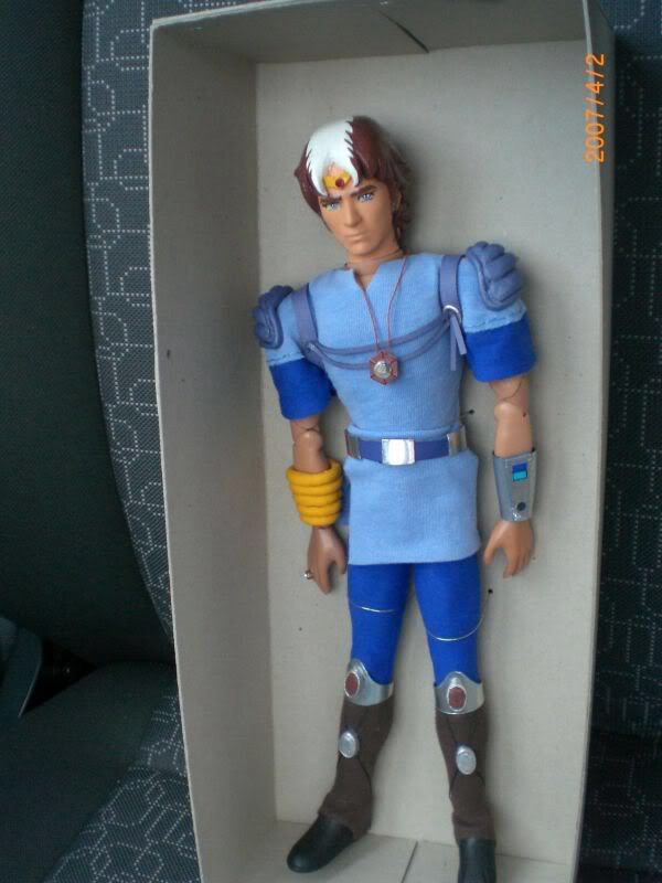 Lors d'une recherche personnelle sur le web, j'ai découvert qu'en 2007, quelqu'un avait réalisé une poupée souple de Jayce, et l'avait présentée lors d'une convention, apparement. Voici donc la poupée en question, prise en photo dans sa boîte, ouverte et fermée, sur le siège de la voiture du propriétaire. Plutôt pas mal, je dois l'avouer. L'expression faciale est assez bien choisie et réussie. Les Japonais sont assez friands de ce genre de poupée souple pour les enfants, à ce que je sais.