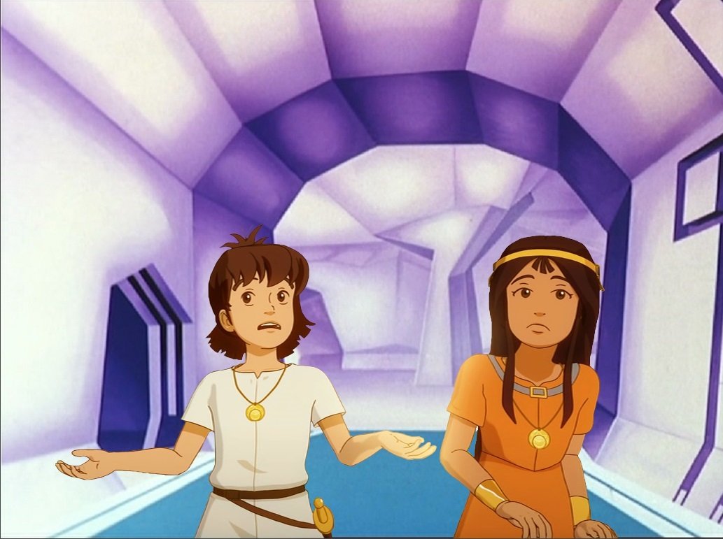 « Ces sono-boîtes sont géniales ! Encore une grande invention de Mû !» s'enthousiasme Tao quand Zia lui rend son livre. Mais la joie du jeune homme est de courte durée car une vingtaine de sintashtas surgit au détour d'un couloir, avec parmi eux les doubles du Prince de Mû et du Fils du Soleil !