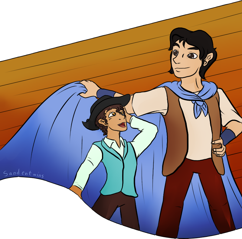 They were walking through unknown streets in an unknown town, where people spoke an unknown language. Esteban was holding his brother's hand, toddling uncertainly behind him, and obviously needing to ask questions that the Captain's angry glares stopped him from speaking. The little kid was terrified, holding onto his elder like a lifeline, and he was this close from bursting into tears, if it weren't for Mendoza's presence.