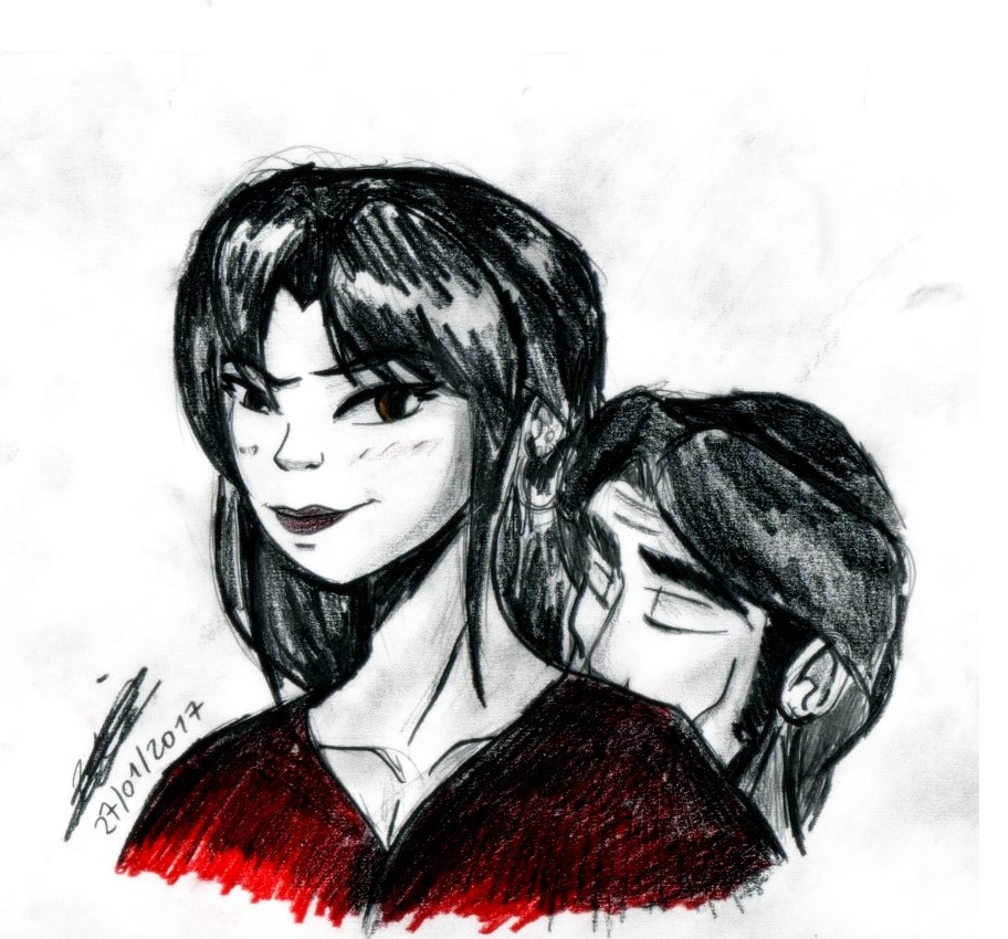 A la base, je voulais juste tenter d'esquisser Isabella avec des cheveux détachés et ce n'était censé être qu'un simple croquis réalisé avec ma panoplie de crayons de papier (de 3H à 6B) - d'où le côté un peu "brouillon" - et je ne comptais pas le poster... mais comme je le disais à Teeger un peu plus tôt, je trouve finalement qu'il y a une jolie atmosphère qui s'en dégage.