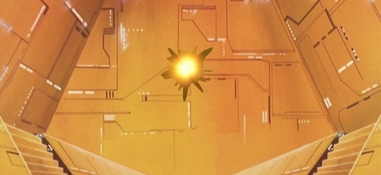Soudainement, quand ils arrivent en son milieu, les portes se ferment et un cylindre d'orichalque descend du plafond, bloquant l'accès au tube et à ses consoles !