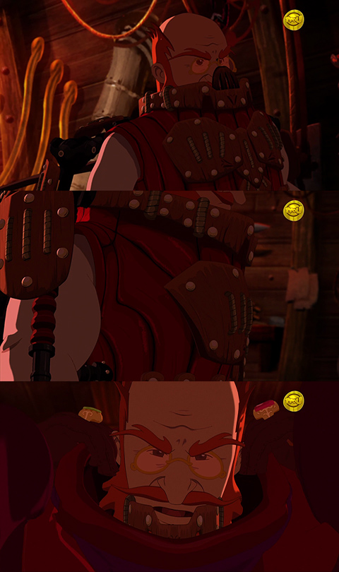En revanche, Zarès... Je ne savais pas que c'était Yoda ! Il saute partout mais en plus, c'est un Elfe vu qu'il retombe avec plus de légèreté sur les toits que le trio qui s'enfuit pour aller voler sa nef ! Sans oublier le côté assassin's creed avec les lames dissimulées et la façon de les utiliser ^^
