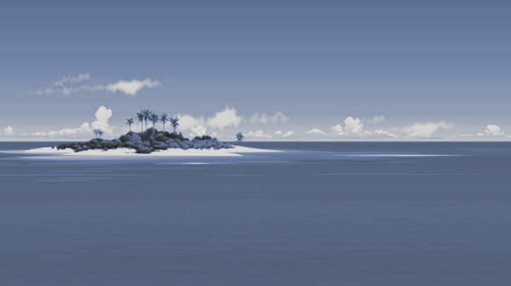 :Mendoza: : La grande beauté de cet îlot du Pacifique Sud était là, déroutante, exagérée, presque inquiétante à nos yeux accoutumés à ce jardin bien élevé qu'est la nature civilisée d'Europe. Notre approche fit à nouveau décoller une colonie de sternes bruyantes qui se mirent à tournoyer en criant au-dessus de la mâture. Mais pour notre plus grand malheur, ce confetti* perdu en plein Pacifique était entouré de récifs et ceux-ci nous empêchèrent d’accoster, comme si la nature l'avait armé pour se défendre contre la mer. Selon Antonio Pigafetta et Francisco Albo, l'île n'était habitée que par ces oiseaux marins et ces arbres, et quelques requins semblaient nager dans ses eaux. Les matelots tentèrent de sonder mais ne trouvèrent aucun fond.