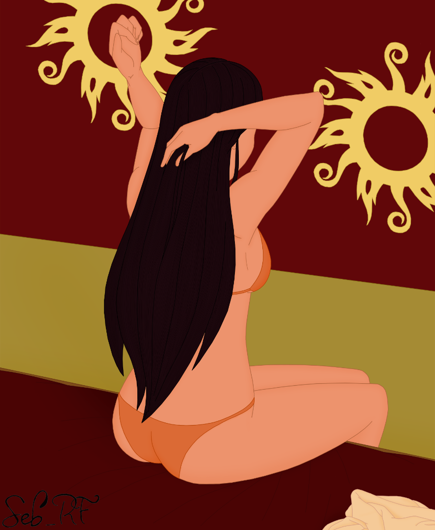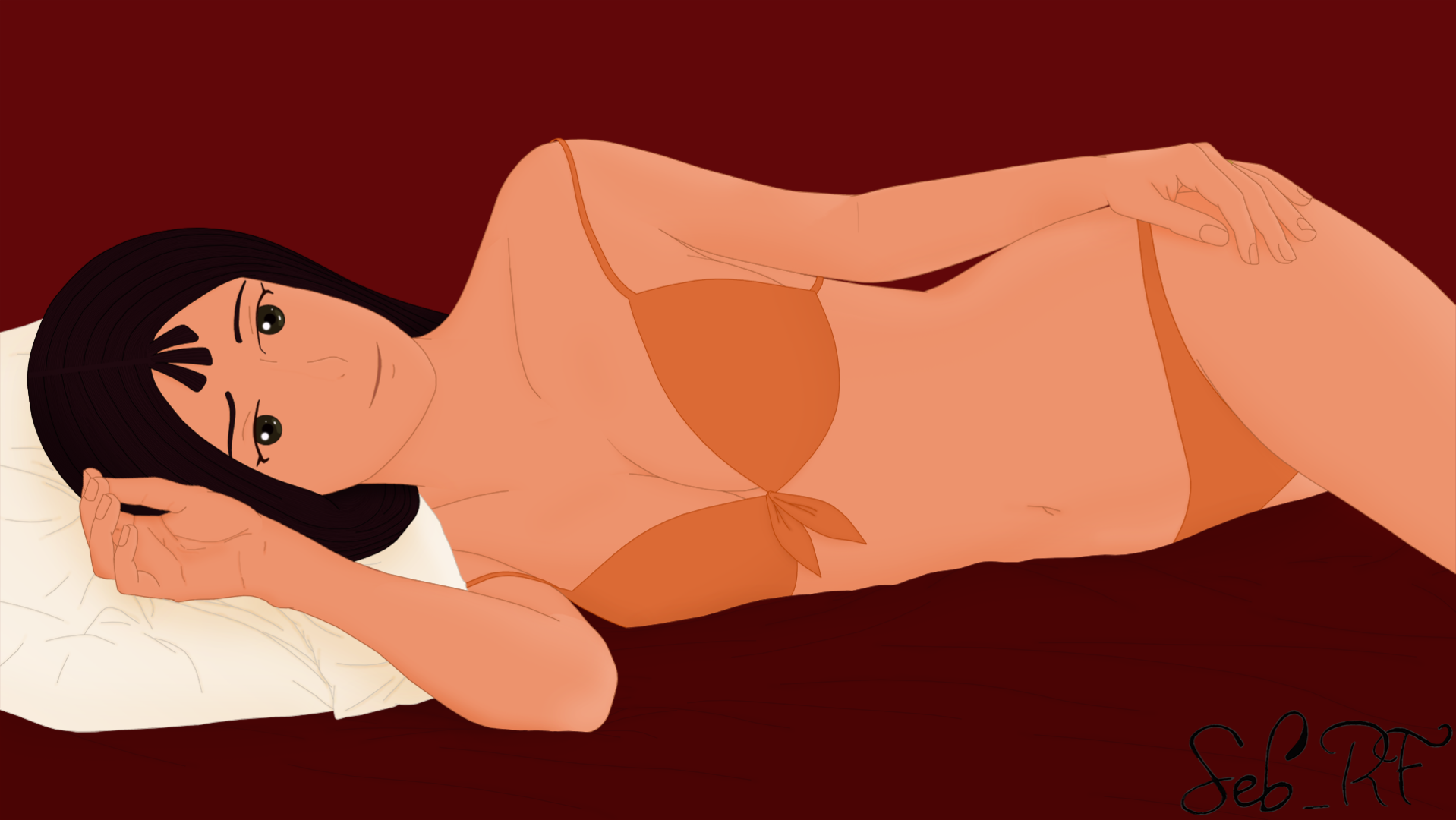 J'apprécie le détail des bretelles, des yeux, la pose lascive, mais j'ai un problème avec le visage, nez et sourire en particulier (je sais, je suis difficile en matière de sourire). Bref, le nez me semble trop peu présent, et le sourire pas assez coquin, il faudrait que ce visage pétille, il est un peu trop 'chat potté' à mon goût (les grands yeux qui réclament un câlin). Mais ce n'est que l'avis d'une représentante de la gente féminine