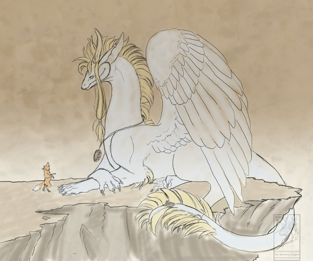 Je suis bien enrhumée depuis hier, alors je vous poste un fanart, trouvé sur deviantart.com, où un Dragon porte La Racine de Jayce autour du cou. Pour rappel, d'après Gillian, seules les écailles de Dragon peuvent guérir d'un bon rhume. J'en aurais bien besoin, ces jours-ci!