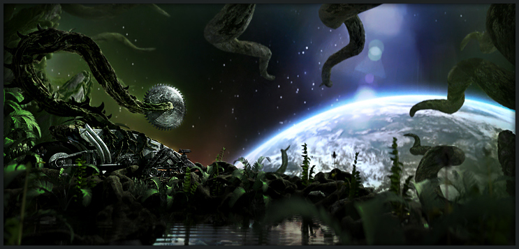 Pour ce week-end, je vous poste un fanart représentant l'invasion de notre planète par les Monstroplantes, très réaliste, trouvé lors d'une recherche personnelle.