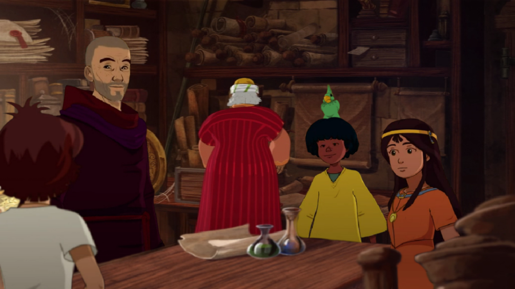 Waga Fayat: Athanaos! Les enfants! Quel plaisir de vous recevoir! J'espère que vous n'avez pas eu de problème pour rejoindre notre belle île d'Ormuz? Mais au fait, par où diable êtes-vous passé? Je croyais avoir condamné la porte de service...