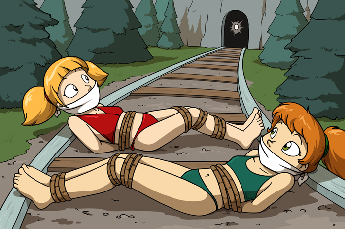 Pour aujourd'hui, un fanart trouvé sur deviantart.com, où un fan n'a rien trouvé de mieux que d'attacher Sophie d'Inspecteur Gadget avec Flora sur les rails d'un train...ras-le-bol des filles intelligentes et intuitives?