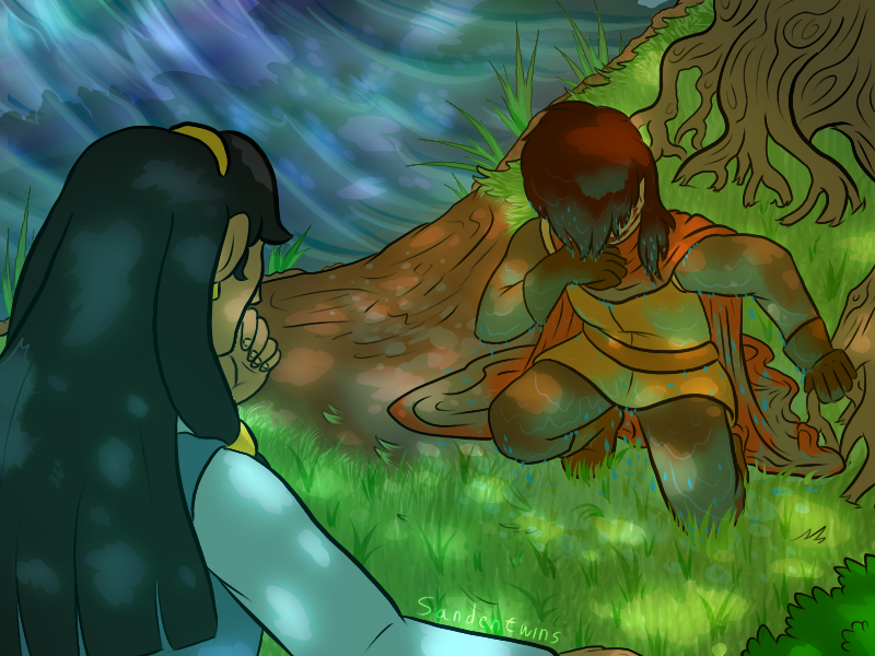 Il s'assit sur un rocher, sans rien avoir d'autre à faire que de penser. Il était coincé, coincé ici pour de bon; pas car il ne pouvait pas bouger, mais car il n'avait pas le choix. Et il s'en sentait mal, ce qui ne laissa pas sa mélodie indifférente.