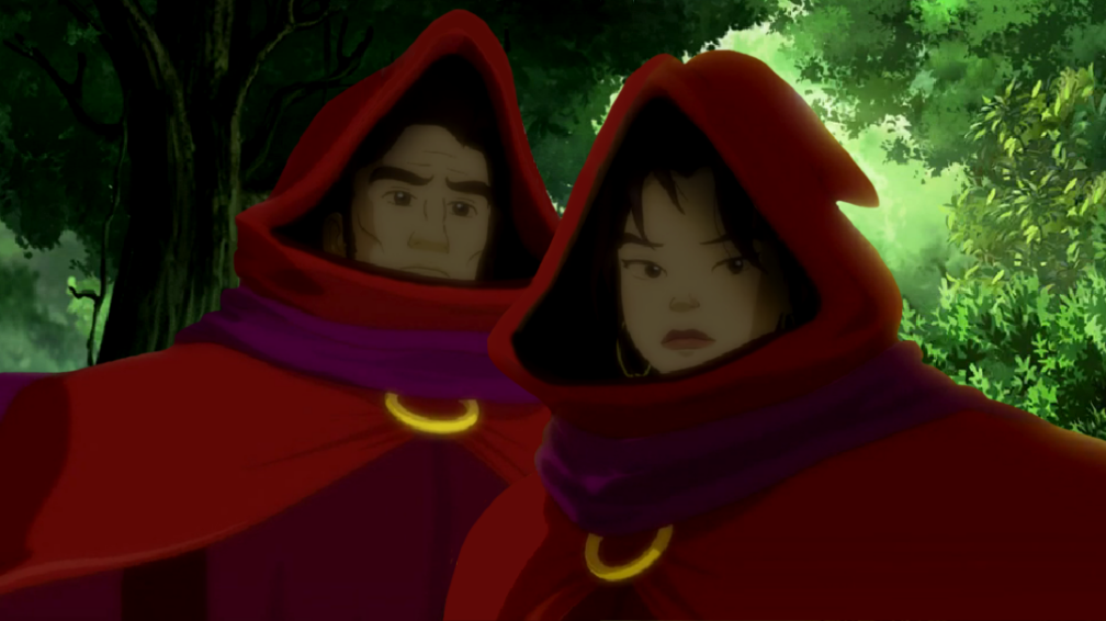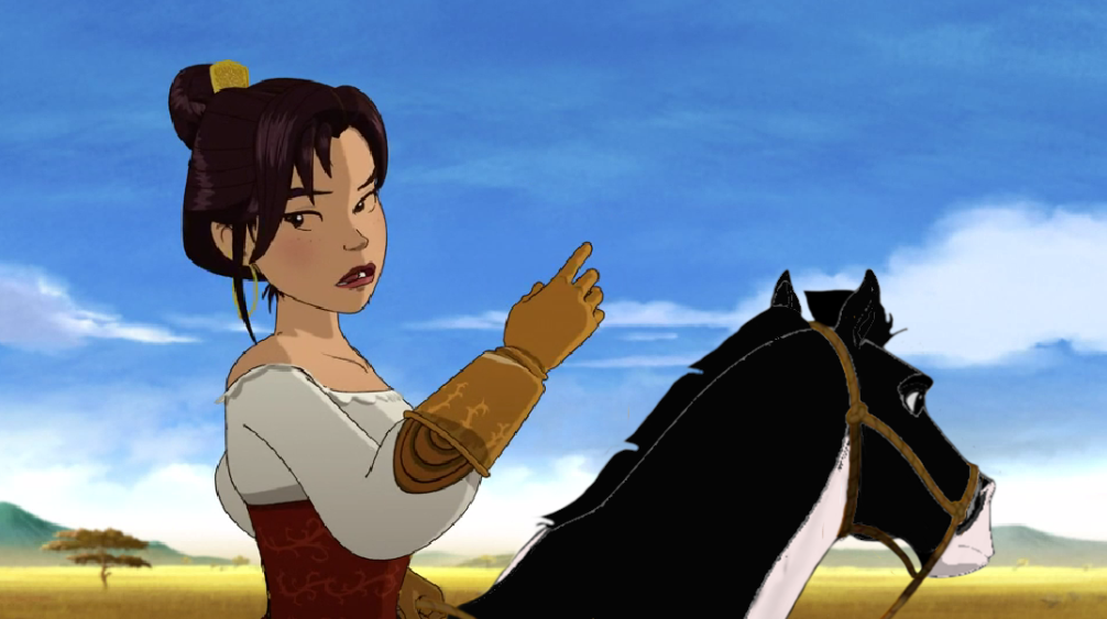 Ils traversèrent ensuite un bois et s'arrêtèrent sous le couvert des arbres tandis que l'aventurière partait en avant reconnaître le terrain. Elle revint, annonçant à son compatriote que le chemin était dégagé et qu'ils pouvaient repartir.
