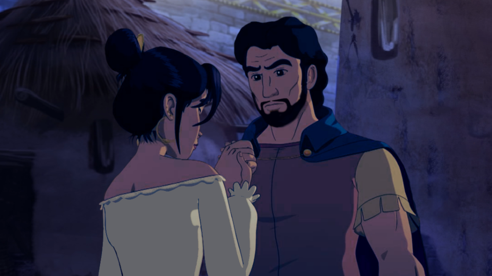Tandis que la princesse Nyamita s'agrippa au cou de Pedro pour lui donner un baiser enflammé, son frère, s'exprimant d'une voix basse et élégante, s'enquit: