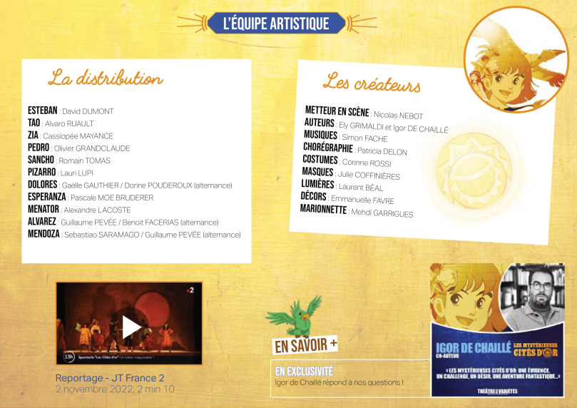 Re: Spectacle musical Mystérieuses Cités d'Or !