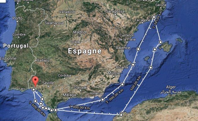 cc pour les intéresser, voici tout le trajet du tome 2 a l'heur actuelle ;) les trajet des navire après la capture de Mendoza et Gonzales ne sont pas encore fini dsl :oops:
