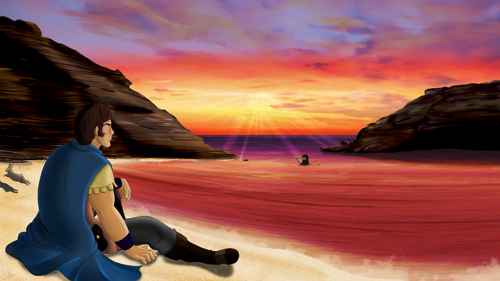 F : Alors, beau brun, on a besoin de réconfort ? Moi qui croyais que je devais te féliciter pour ton mariage…à peine marié, et tu te saoûles déjà ? Elle est donc si terrible ? Ah non, j’y suis, elle te manque déjà ! Viens voir un peu, moi les chagrins de marins ça me connait !