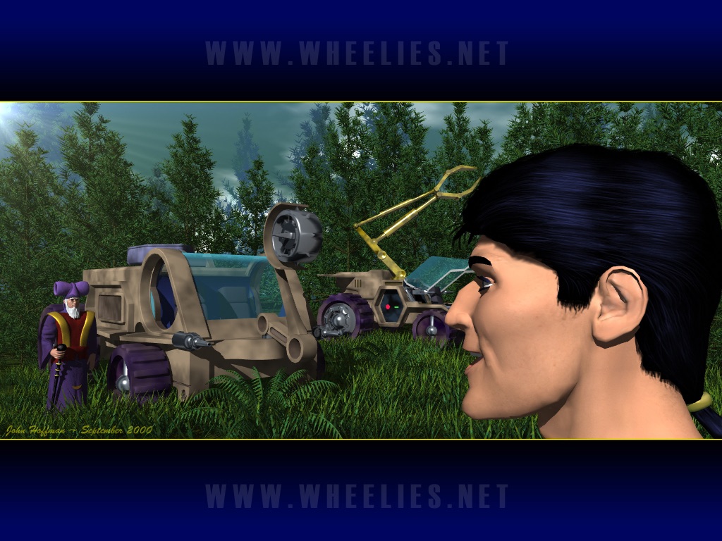 Aujourd'hui, Herc part à la chasse au trésor, sous le regard désapprobateur de Gillian. Fanart réalisé par John Hoffman, alias Gillian, sur wheelies.net.