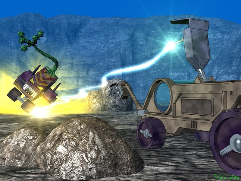 Rien de tel qu'un bon dégommage de mauvaises herbes, pour bien commencer la journée! Fanart par John Hoffman, alias Gillian, sur wheelies.net.