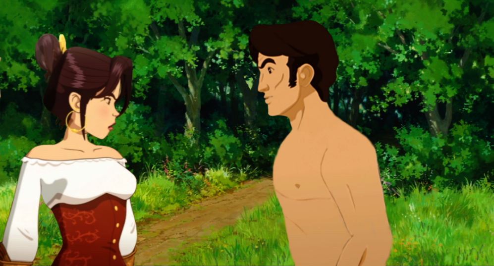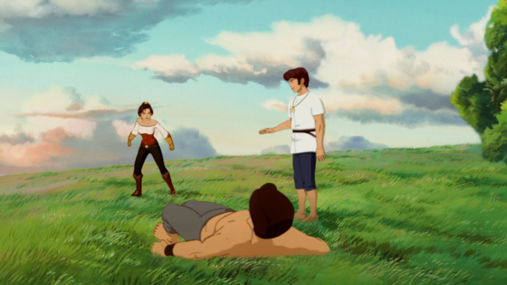 Isabella, qui cette fois les avait accompagnés, les regardait, assise par terre, au pied d'un grand chêne. Après une parade maladroite de son époux, elle laissa échapper un rire cristallin, dont le chant moqueur parvint jusqu'aux oreilles du concerné.