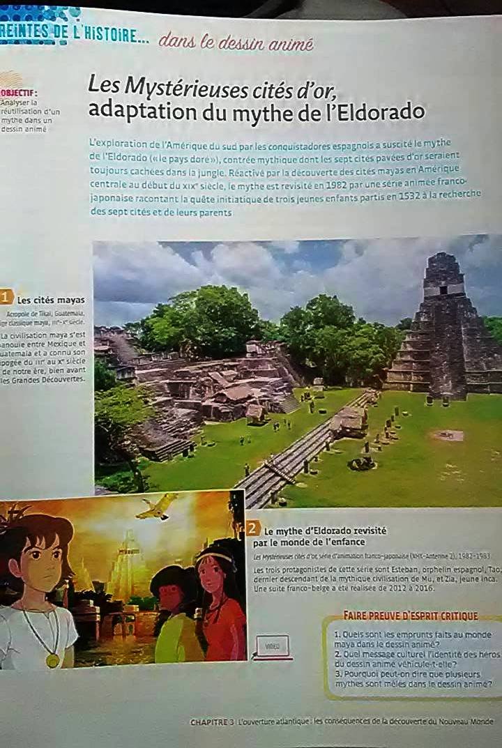 Et pas seulement: elle est adulte tout simplement, et a conservé des souvenirs. Comme les civilisations amérindiennes sont au programme des écolier, il n'est donc pas surprenant qu'un jour un auteur ait eu l'idée de les proposer dans un manuel. Du moins c'est ce que j'ai pu constater dans une photo de manuel de seconde qu'on m'a fait parvenir.