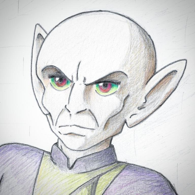 Ce dessin est une représentation fidèle, dans le 37ième épisode, je crois, mis à part que je lui ai viré sa cape, que je trouve horrible, et le triangle sur son uniforme...